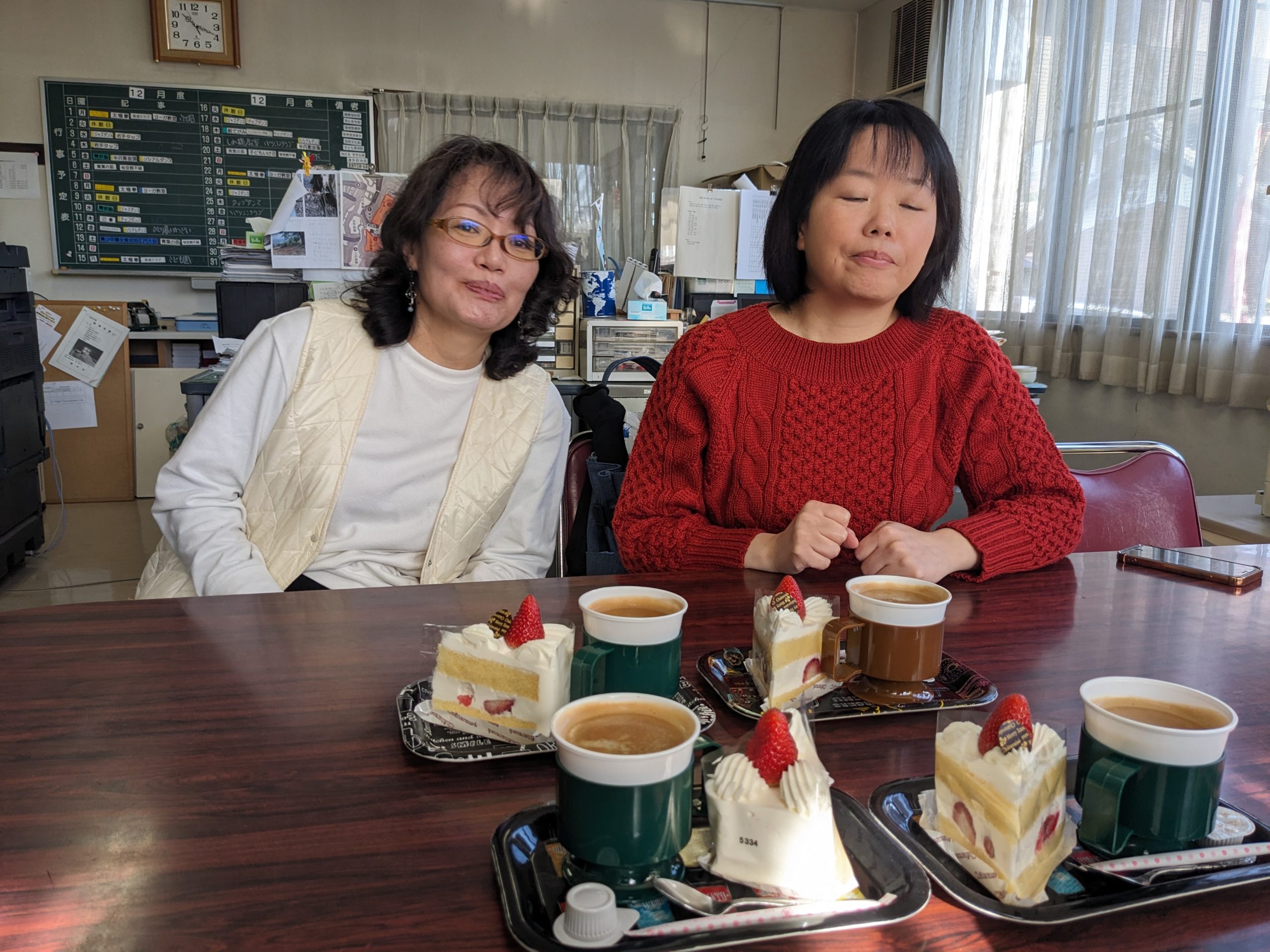 演奏後には、岩手地区まちづくり協議会の皆様にご用意いただいたコーヒーとショートケーキでちょっと一息。