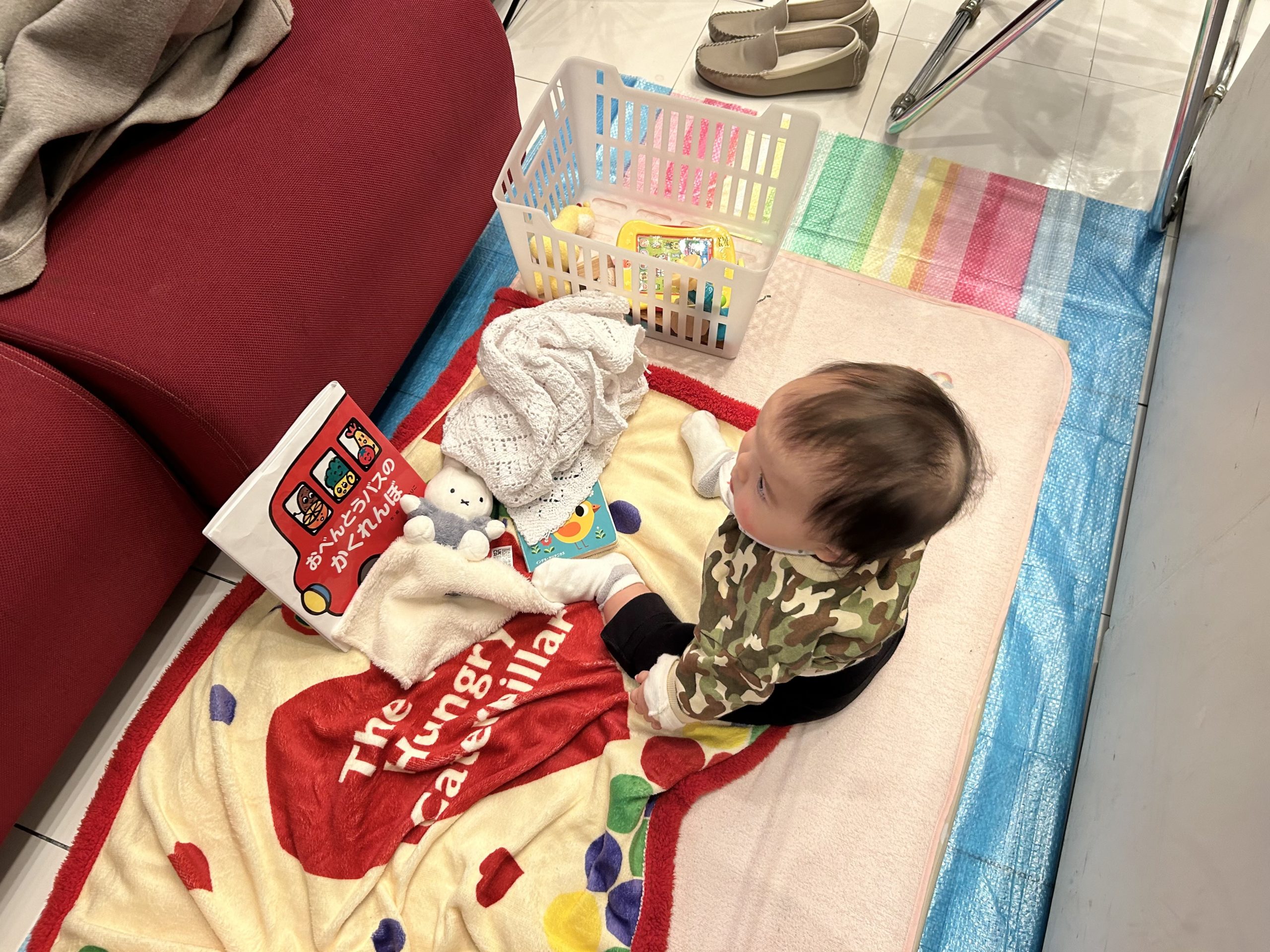 とりあえず離乳食食べて機嫌良くなってもらおう!と取り出すと、なんとスプーンを持ってきてなくて、目の前にご飯だけ置かれて食べられないことでギャン泣き😭